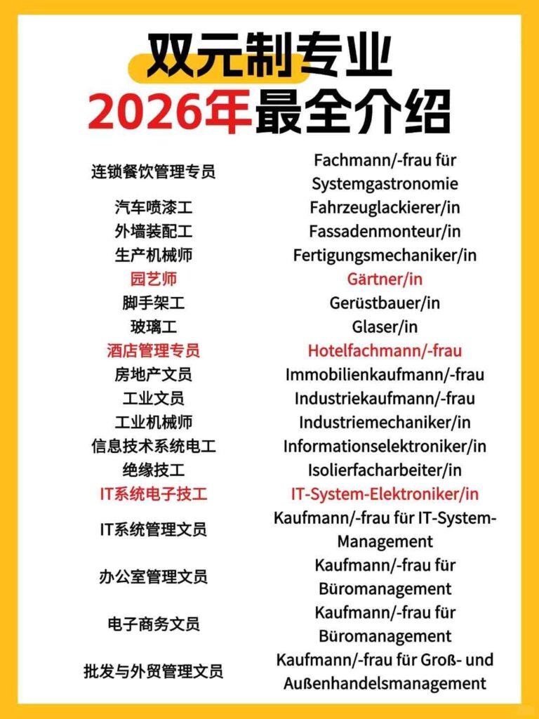 ❗那么2026年最新的双元制岗位还有哪些名额?哪些专业最适合你的背景?哪些收入比较可观?