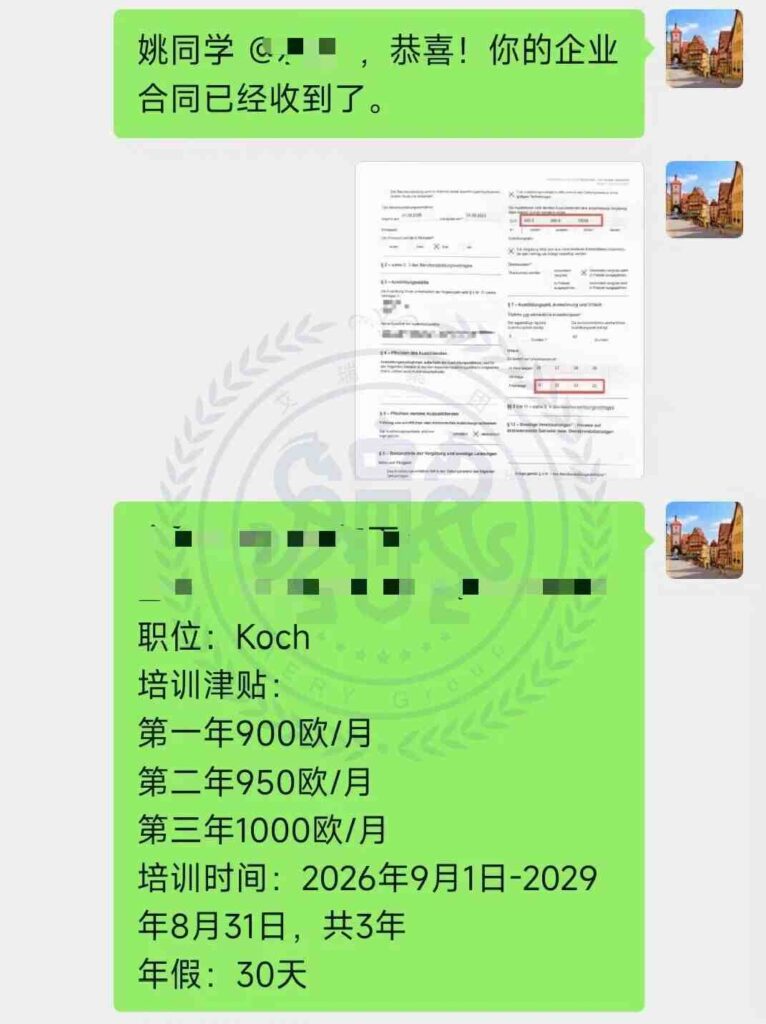 恭喜Z同学顺利拿下德国双元制企业合同,即将赴德开启“带薪学习+高薪就业”的职业新征程!